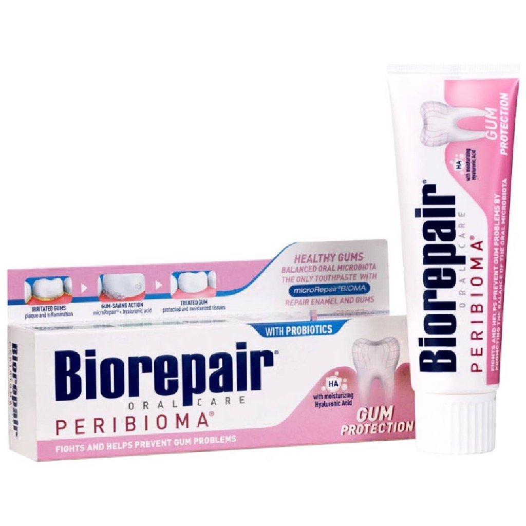 Biorepair® Gum Protection je zubní pasta na bázi aktivních mikročástic microRepair biomimetických hydroxyapatitu, které jsou strukturálně podobné částicím přítomným na povrchu zubů a jsou schopny proniknout mikropoškozením do zubů, opravit poškozenou sklovinu a uzavřít obnažené dentinové tubuly. Biorepair® Gum Protection díky obsahu kyseliny hyaluronové podporuje hojení tkání, zvlhčuje a chrání ústní sliznici. Pasta obsahuje laktoferin, který zabraňuje růstu bakterií.