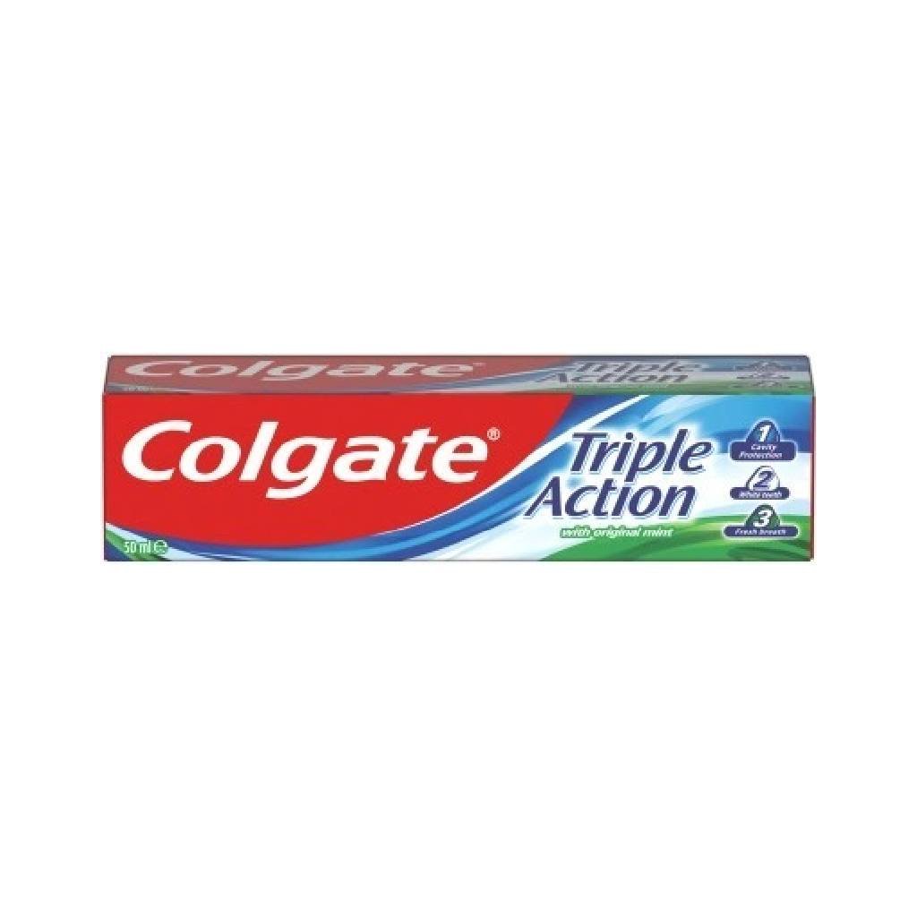 Kompletní péče pro váš úsměv s zubní pastou Colgate Triple Action. Chrání před zubním kazem, bělí zuby a osvěžuje dech. Vše v jedné pastě pro celou rodinu.
