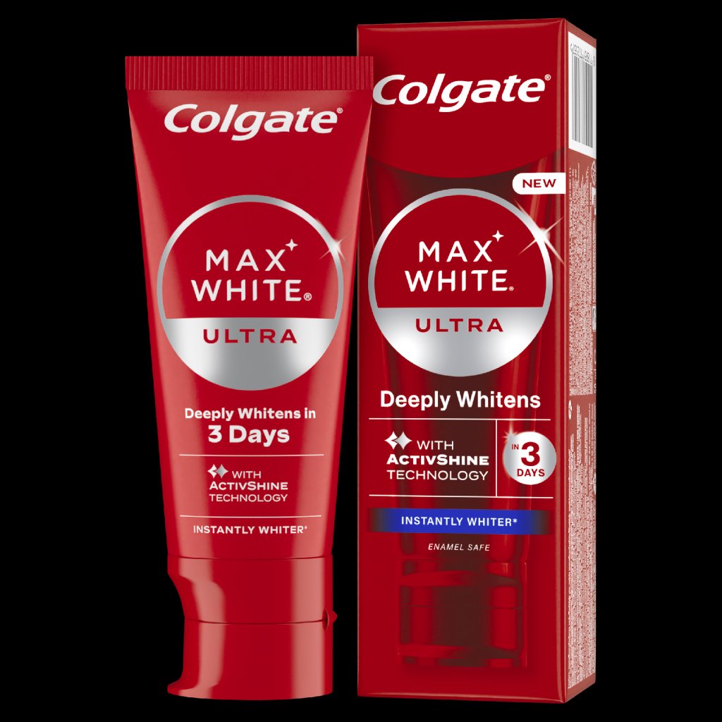 Na rozdíl od běžných bělicích zubních past, Max White Ultra Instantly Whiter zuby důkladně vybělí již za 3 dny! Tato zubní pasta je navržena tak, aby okamžitě* vybělila váš úsměv. *Okamžitý efekt je dočasný. Dosáhněte dramatického efektu s okamžitým* a hloubkovým bělením za pouhé 3 dny! Představujeme zubní pastu Colgate Max White Ultra Instantly Whiter, nejnovější řešení pro dokonalé bělení zubů. Tato technologicky pokročilá bělicí zubní pasta, která obsahuje to nejlepší z vědeckých poznatků společnosti Colgate v oblasti bělení, jde daleko za hranice základního odstranění povrchových skvrn, jako je tomu u běžných bělicích zubních past. Okamžitě bělí* a cílí na výrazné hluboko usazené skvrny**, takže můžete zažít sílu skutečného vybělení zubů pomocí zubní pasty. Díky inovativní technologii ActivShine vyhlazuje povrch skloviny, aby odrážela více světla a dosáhla tak přirozeně oslnivého výsledku. Hloubková kyslíková reakce poskytuje pastě jedinečnou hřejivou, bohatou pěnu s vylepšenou chutí. Klinicky ověřená a neabrazivní zubní pasta Colgate Max White Ultra Instantly Whiter účinně odstraňuje výrazné skvrny** ze zažloutlých zubů a zároveň poskytuje okamžitě* bělejší zuby. Navíc je bezpečná pro zubní sklovinu při každodenním používání. Zanechte trvalý, dramatický dojem, který je stejně pozoruhodný jako vy! *Okamžitý efekt je dočasný. **Odstraňuje zabarvení, které se v průběhu času usadilo ve sklovině, při pravidelném používání dvakrát denně.