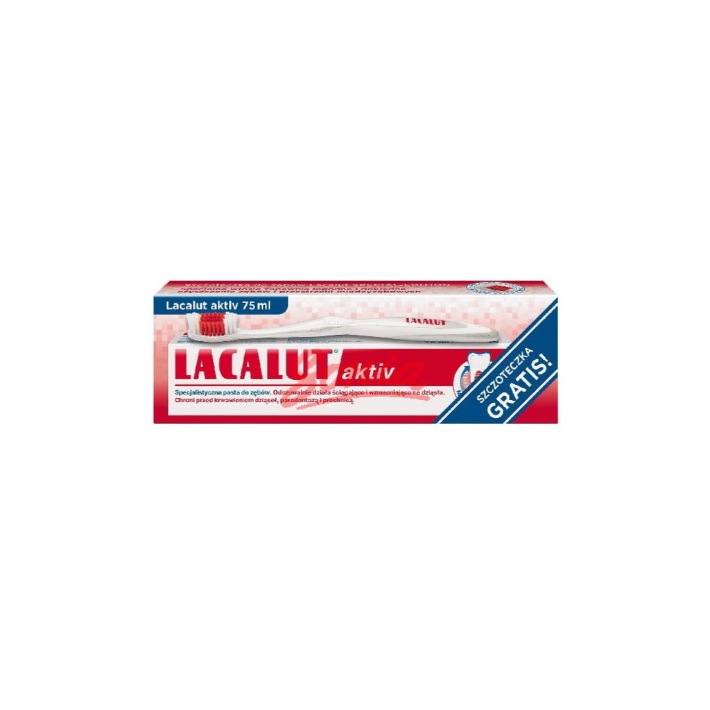 Zubní pasta Lacalut aktiv je prostředkem, sloužícím k prevenci před parodontózou a má výrazné stahujicí účinky. Účinnou látkou je aluminium laktát, který vykazuje výrazné adstringentní (stahujicí) účinky. Posiluje parodont a zastavuje krvácení dásní. Přítomné složky alantoin a bisabolol zabezpečují protizánětlivý účinek. Přítomné fluoridy (1 360 ppm fluoru) zpevňují zubní sklovinu a chrání ji před vznikem zubního kazu. Obsažený chlorhexidin, nejúčinnější látka v boji proti zubnímu plaku, rozrušuje zubní povlak a zabraňuje jeho zpětnému usazování na sklovině. Účinnost zubní pasty zvyšuje Lacalut aktiv ústní voda a Lacalut aktiv zubní kartáček.