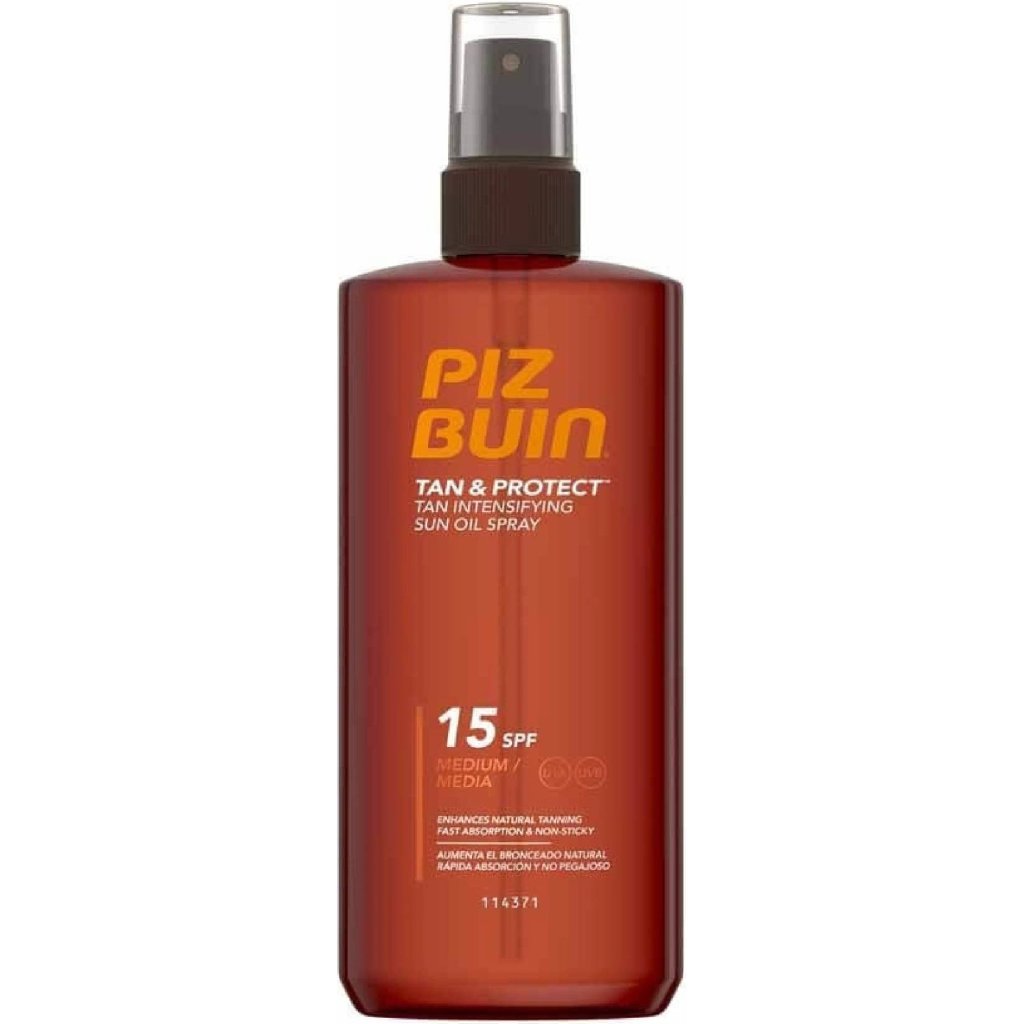 Olejový sprej urychlující opálení Tan & Protect od značky Piz Buin dodává pokožkce hydrataci a výživu a zároveň prodlužuje opálení. Chrání pokožku před slunečním zářením a dodává jí zdravý opálený vzhled. Aktivní látky: