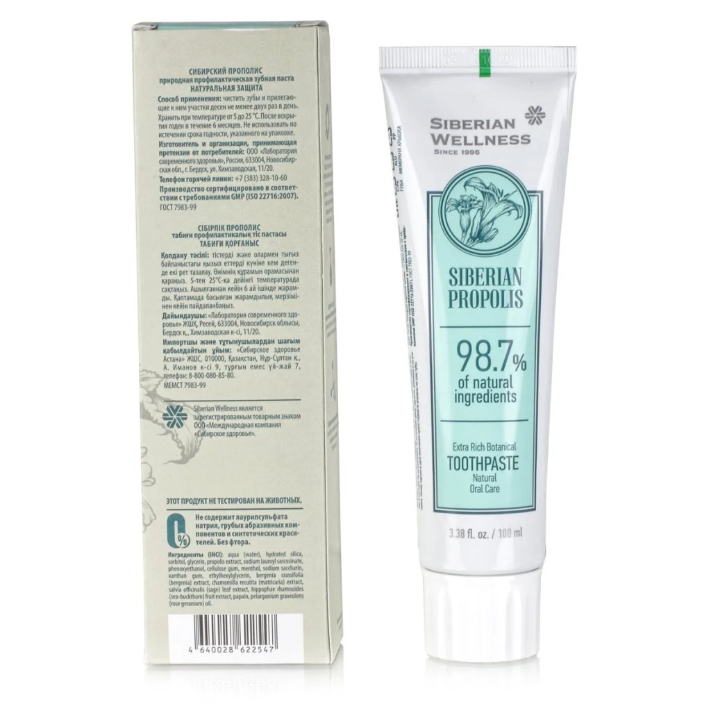 Bohatá bylinná zubní pasta s propolisem a extrakty sibiřských endemických bylin je vaším každodenním pomocníkem při čištění zubů a péči o dásně.
