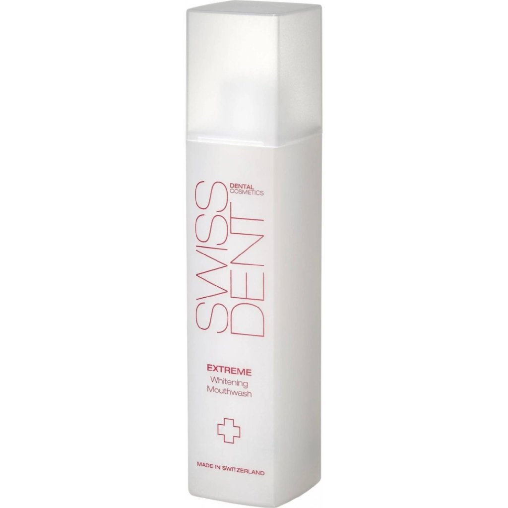 SwissDent EXTREME ústní voda má antibakteriální účinky a vytváří pocit svěžího dechu s prodlouženým účinkem. Ústní voda je především určena pro bělené zuby a při procesu bělení zubů. Neobsahuje alkohol a díky svému složení zpomaluje tvorbu zubního plaku a usazování zubního kamene. Ústní výplach SWISSDENT EXTREME s bělicím účinkem a patentovanou technologií OXYgard zaručuje dlouhotrvající svěží dech i při konzumaci velmi aromatických potravin, či nápojů. Doporučujeme používat v kombinaci se zubními pastami Swissdent Extreme a to kdykoliv během dne.