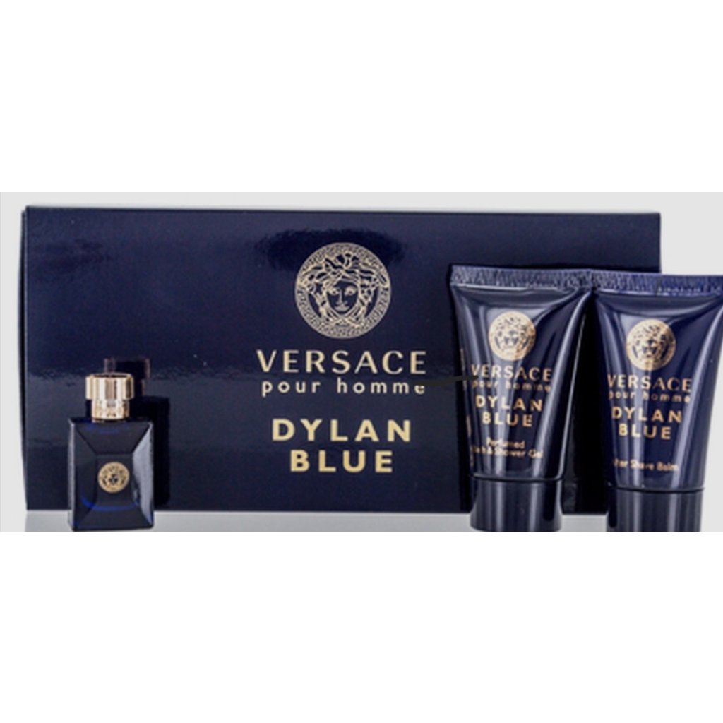 Versace Dylan Blue pour homme Dárková sada, EDT 5 ml + as balm 25 ml + Sprchový gel 25 ml