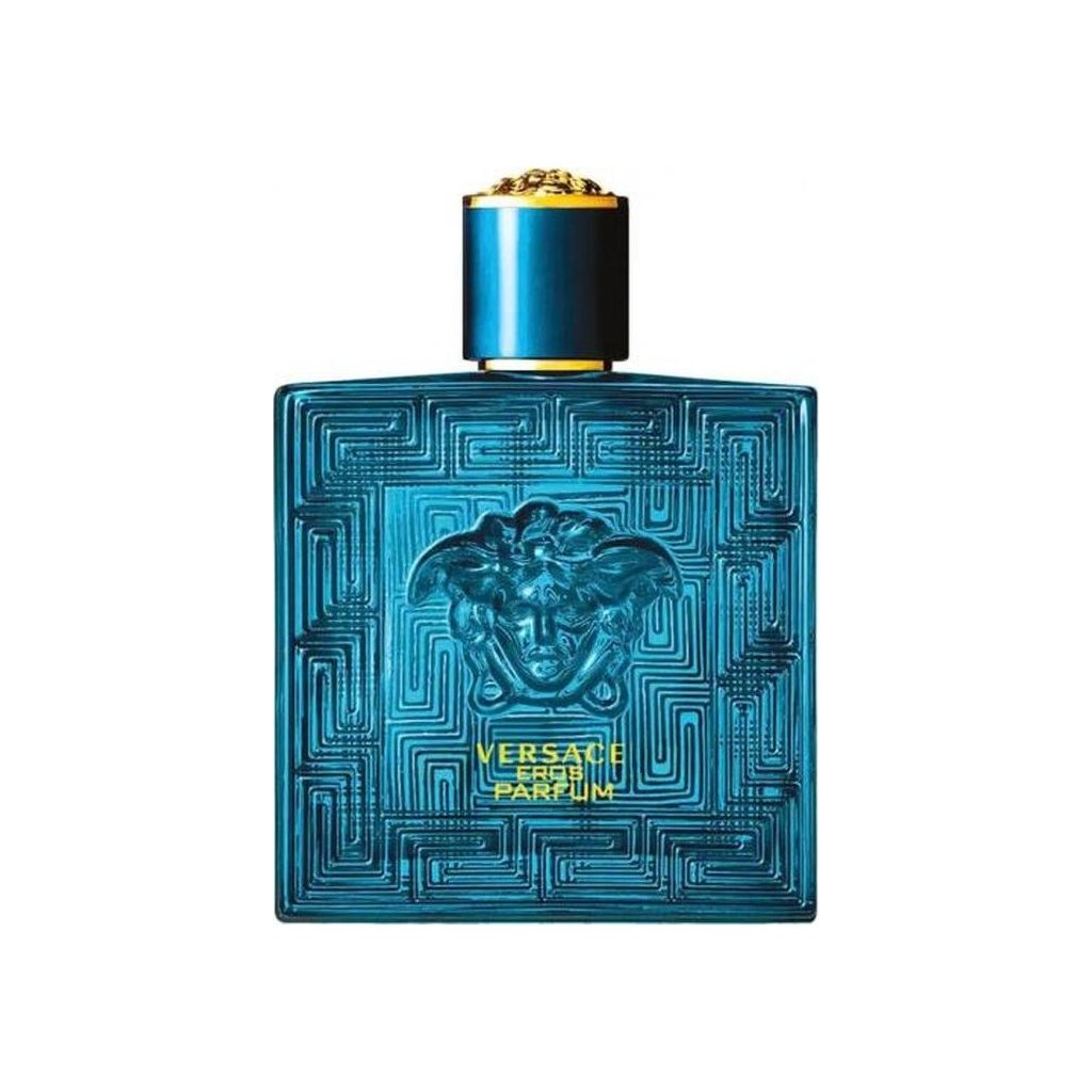 stylu. Zlatý rytý nápis Versace Eros dominuje centrální části